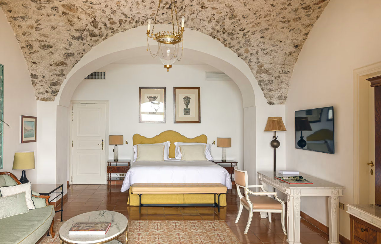 Bienvenue dans un lieu où l’élégance italienne rencontre la quiétude méditerranéenne. Derrière ses murs en pierre dorée, le Caruso dévoile 50 chambres et suites, chacune ornée de fresques anciennes, de sols en marbre et de terrasses ouvertes sur la mer. Certaines suites possèdent leur propre jardin privé ou balcon panoramique, idéal pour savourer un verre de limoncello face à l’horizon.