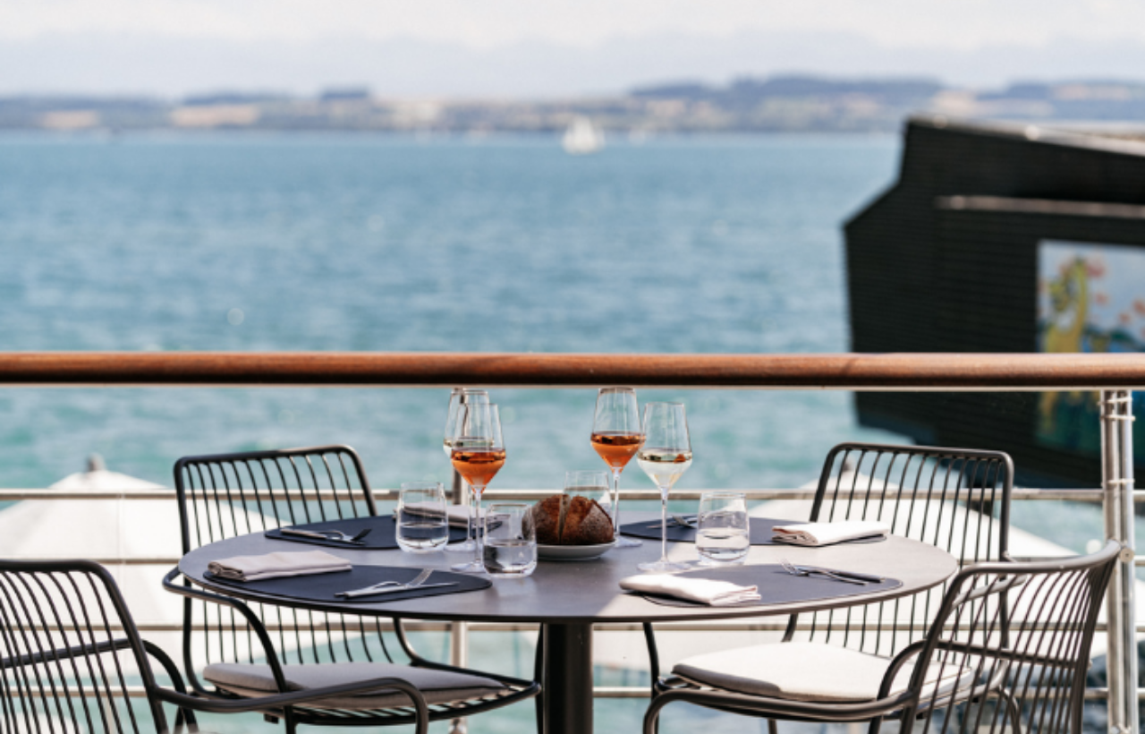 Au restaurant La Table du Palafitte, le chef célèbre la richesse du terroir suisse avec une cuisine locavore et saisonnière. La terrasse panoramique invite à savourer ces créations tout en contemplant les reflets changeants du lac, du petit matin aux lumières dorées du coucher de soleil.