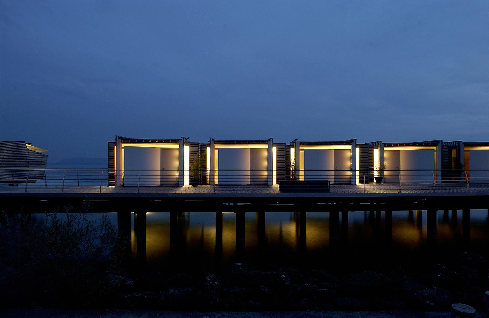 L’hôtel propose 38 pavillons indépendants, dont 24 sur pilotis directement au-dessus du lac et 14 nichés sur la rive. Chaque pavillon, pensé comme une suite privée, dispose d’une terrasse de 10 m² et de larges baies vitrées ouvrant sur un panorama spectaculaire. De plus, les intérieurs allient matériaux naturels durables (bois certifié, textiles écoresponsables) et confort haut de gamme : literie premium, salle de bain spacieuse, technologies discrètes à faible consommation énergétique. L’orientation des pavillons maximise la lumière naturelle et réduit l’empreinte énergétique, tout en vous offrant un contact permanent avec l’eau.
